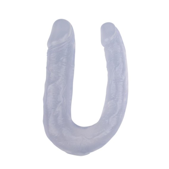 Przezroczyste dildo w ksztłcie U. Długość 33 cm, średnica 3,5-2,5 cm