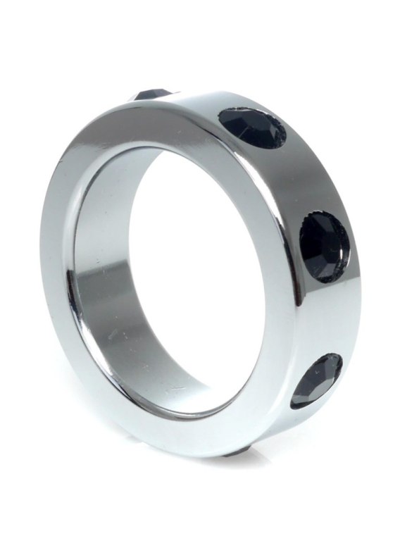 Pierścień-Metal Cock Ring with Black Diamonds Medium